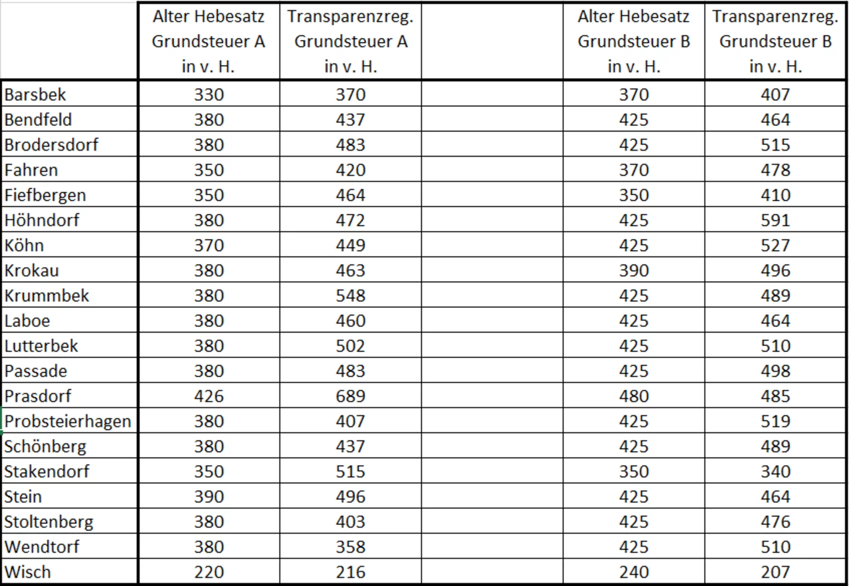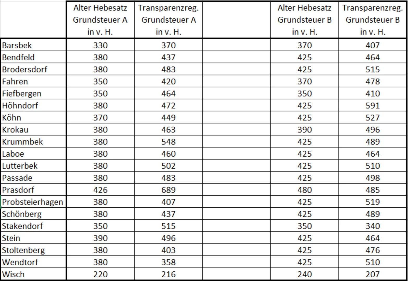Hierfür hat das Land Schleswig-Holstein den Gemeinden im sogenannten Transparenz-Register Hebesätze an die Hand gegeben, die eine aufkommensneutrale Erhebung gewährleisten sollten.