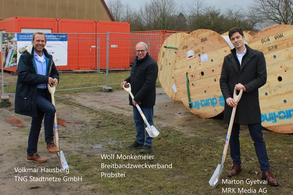 Der Pandemie geschuldet fand heute im kleinen Rahmen der Spatenstich zum Ausbau des Glasfasernetzes in der Probstei statt.