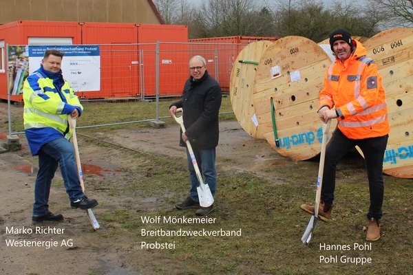 Die Firma Pohl hat das Baulos 3 im Dezember fertig gemeldet und hat die Probstei verlassen. Die Firma Krafteam hat das Baulos 2 ebenfalls fertig gestellt, realisiert aber aktuell noch den eigenwirtschaftlichen Ausbau von unserem Betreiber TNG Stadtnetz GmbH in Schönberg.