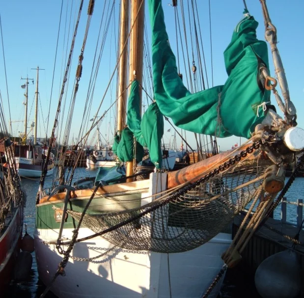 Auf dem ehemalige Haikutter können bis zu 25 Gäste an Bord gehen. Mit der Original-Takelage bietet das Holzboot ein rustikales Ambiente für eine maritime Trauung.